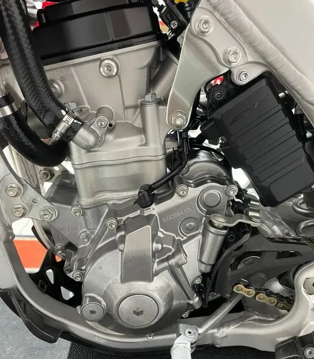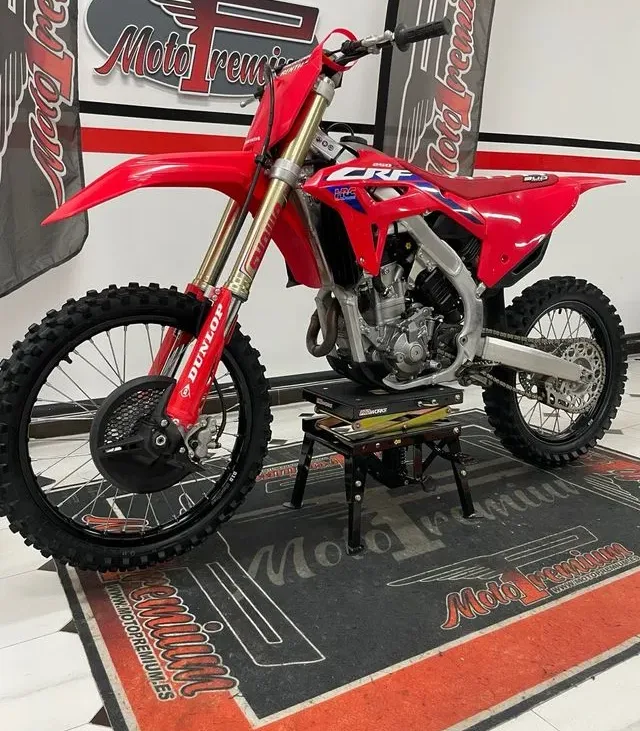 Es una moto de motocross pura, heredera directa de la CRF 450 R, con chasis y suspensiones de competición y una entrega de potencia optimizada para pilotos exigentes.