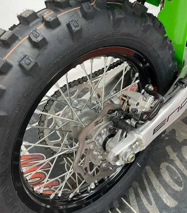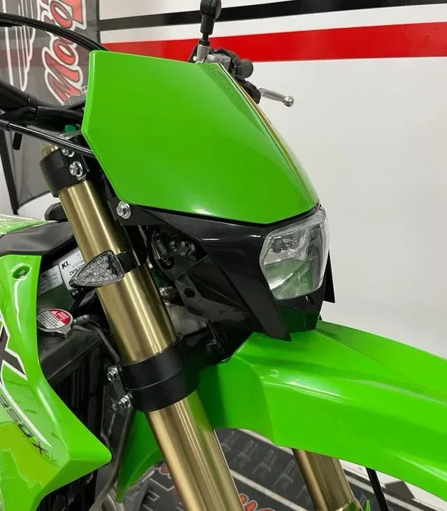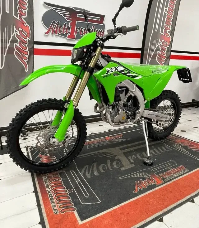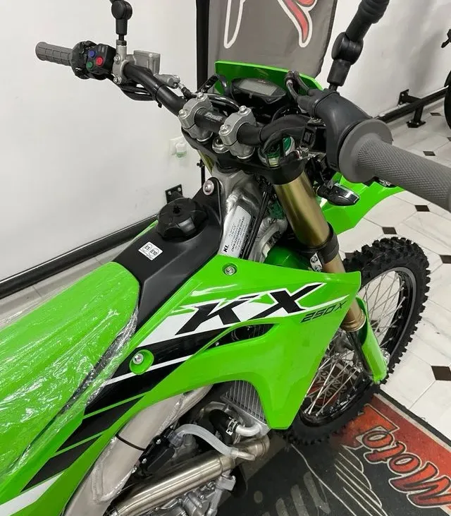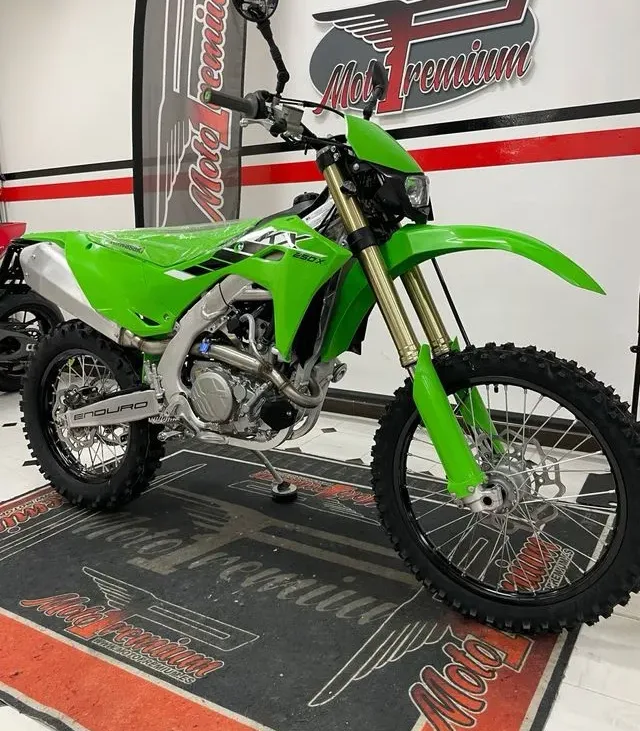 La KX 250 X 2025 es la versión de enduro/cross‑country de la KX250 de motocross. Mantiene el motor de alto rendimiento, pero añade rueda trasera de 18”, desarrollos adaptados, suspensiones específicas y ergonomía pensada para tramos largos y terrenos variados. Es una moto ligera, muy potente y enfocada a pilotos que buscan rendimiento puro en enduro rápido.