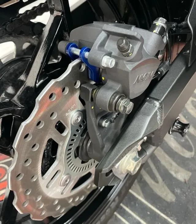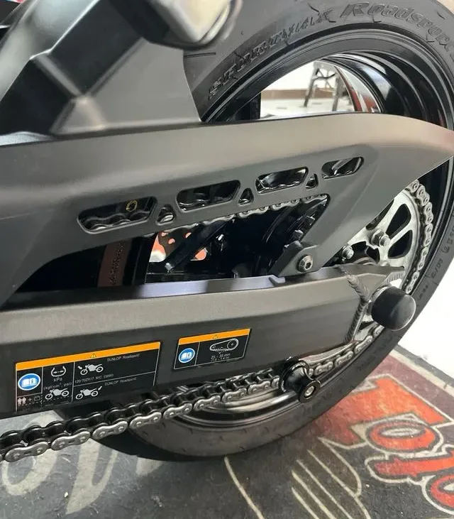 • Chasis tubular de acero con basculante de doble brazo.